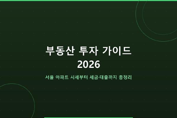부동산 투자 가이드 2026: 서울 아파트 시세 전망부터 세금·대출까지2026년 2월 21일·1150 단어수·6 분· loading 부동산 부동산투자 투자가이드 서울아파트 취득세 양도소득세 DSR 공급절벽